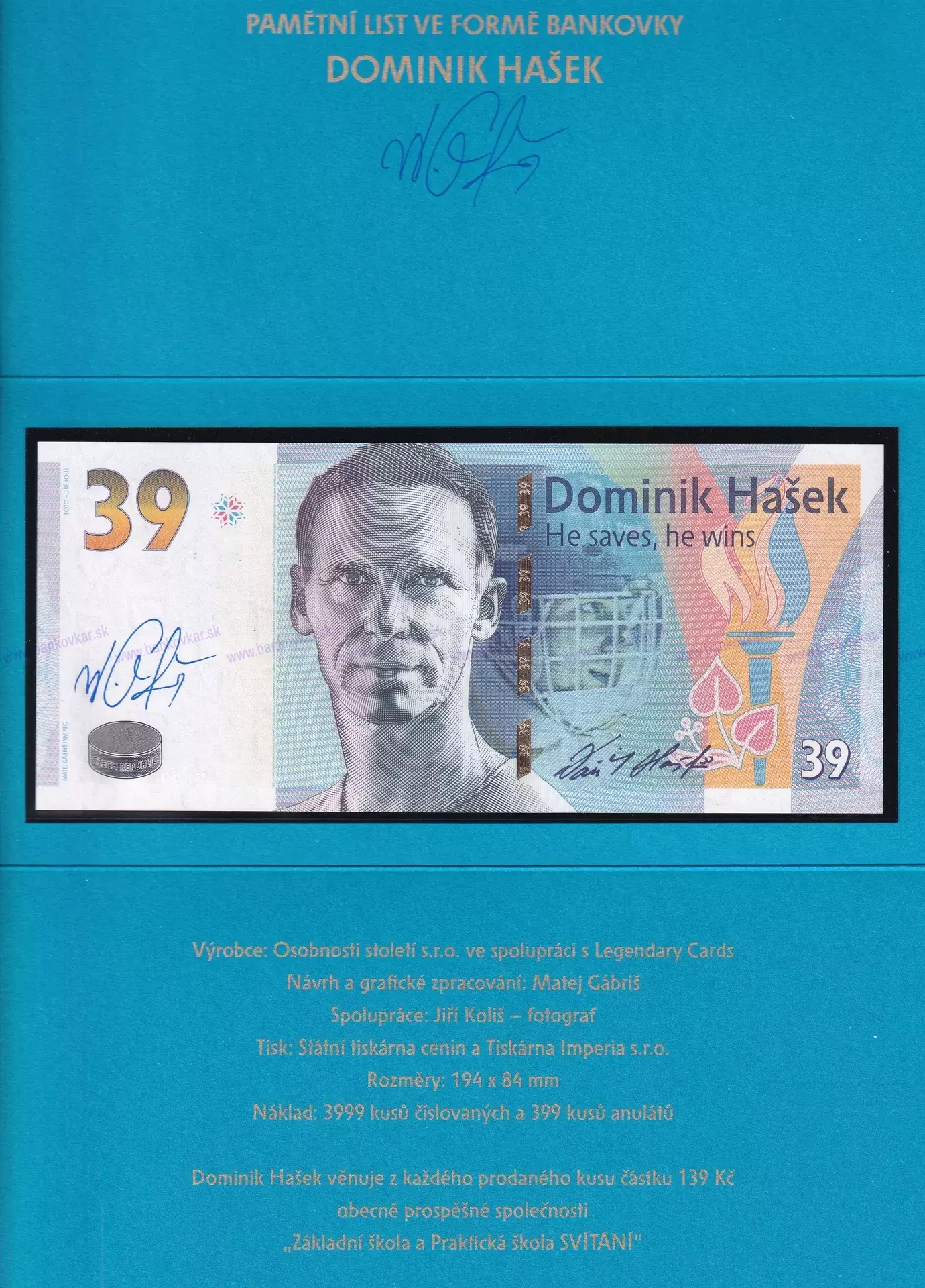 Tlač pamätného listu vyhotovila Státní tiskárna cenin v spolupráci s Tiskárnou Impéria (tlačiarne úzko spolupracujú v oblasti ceninovej tlače). Číslovanie je vyhotovené rovnakým spôsobom, ako na súčasných českých bankovkách (stúpajúca veľkosť číslic); bankovkový vodoznakový papier (lipové listy), hĺbkotlač portrétu a puku (sklopný efekt), mikropísmo, UV farba a ďalšie ochranné prvky.