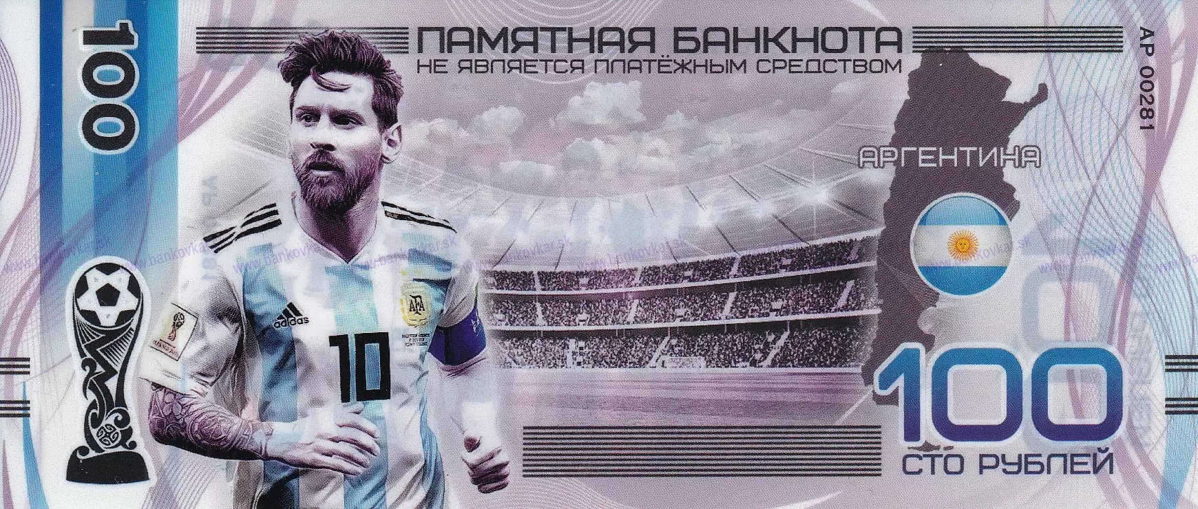 | Predná strana: | Lionel Andrés Messi Cuccittini, tiež známy ako Leo Messi, je argentínsky profesionálny futbalista, ktorý hrá v Ligue 1 za Paris Saint-Germain FC a je kapitánom argentínskeho národného mužstva. Často býva označovaný za najlepšieho futbalistu v histórii. | |||